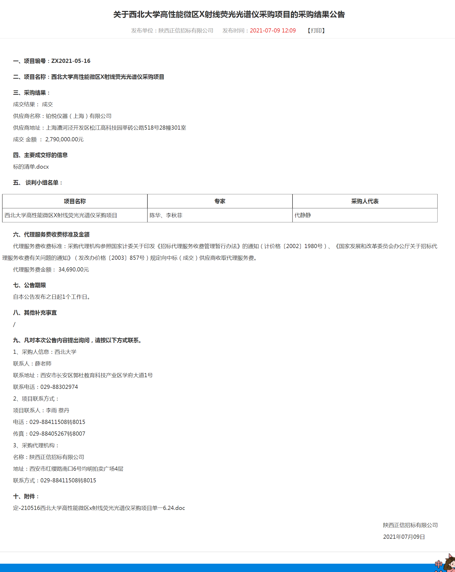关于米兰网页版·官方端在线高性能微区X射线荧光光谱仪采购项目的采购结果公告