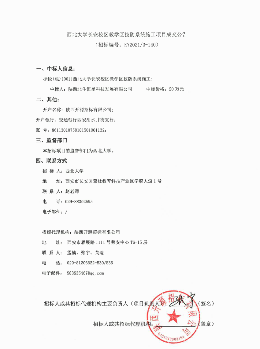 米兰网页版·官方端在线长安校区教学区技防系统施工项目成交公告
