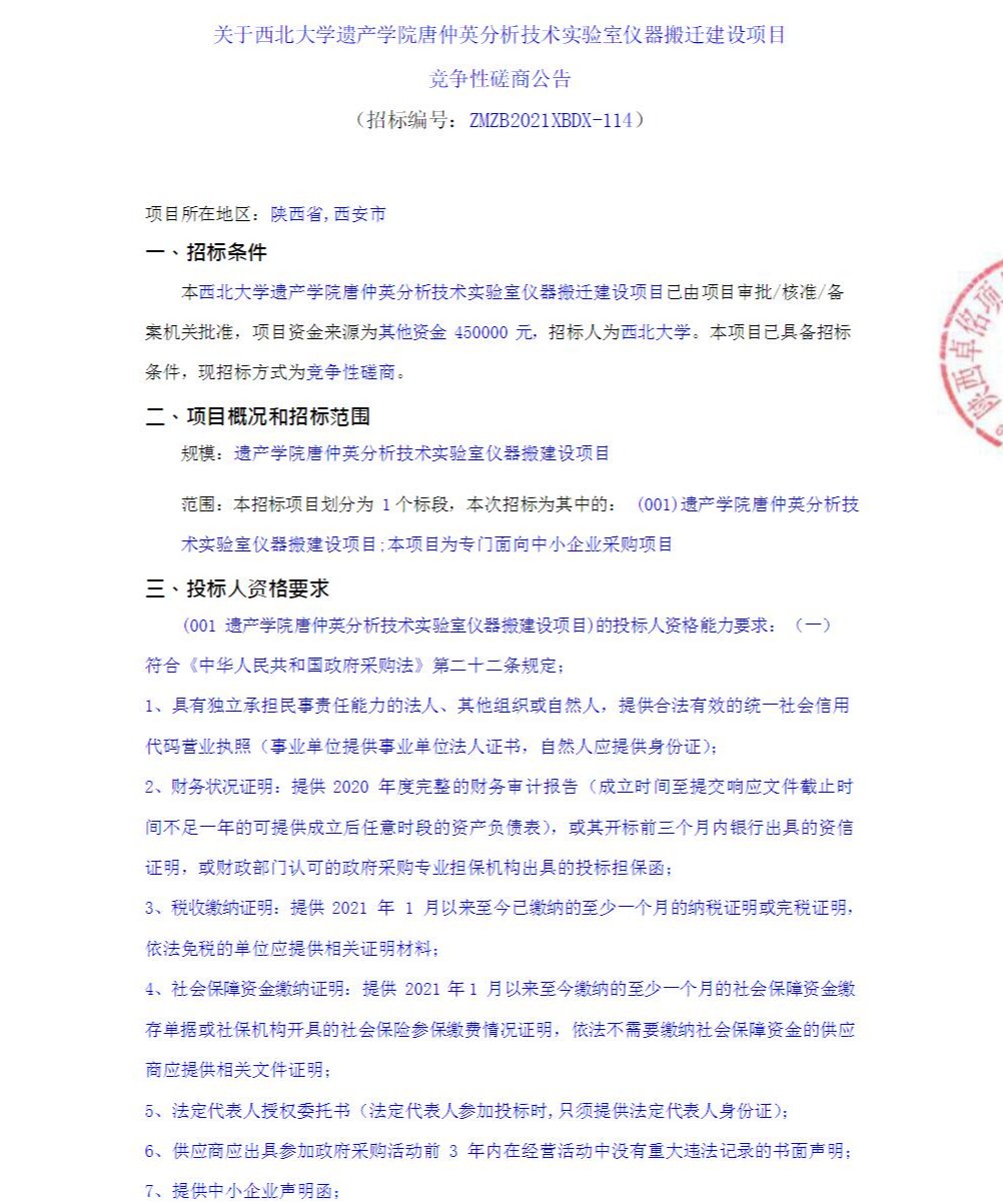 关于米兰网页版·官方端在线遗产学院唐仲英分析技术实验室仪器搬迁建设项目竞争性磋商公告