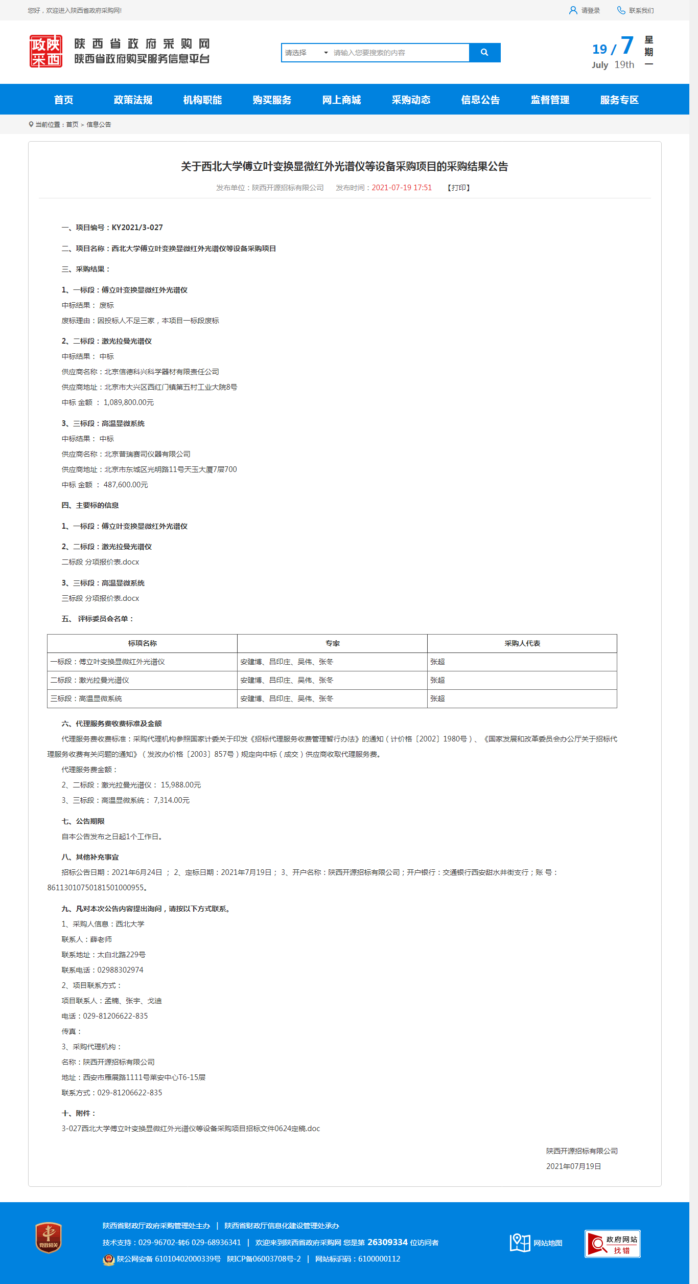 关于米兰网页版·官方端在线傅立叶变换显微红外光谱仪等设备采购项目的采购结果公告 作者: 编辑:采购与招标办公室 时间:2021-07-19 原公告地址:http://www.ccgp-shaanxi.gov.cn/notice/noticeDetail.do?noticeguid=8a85be337a79620e017abdb0b9d25220