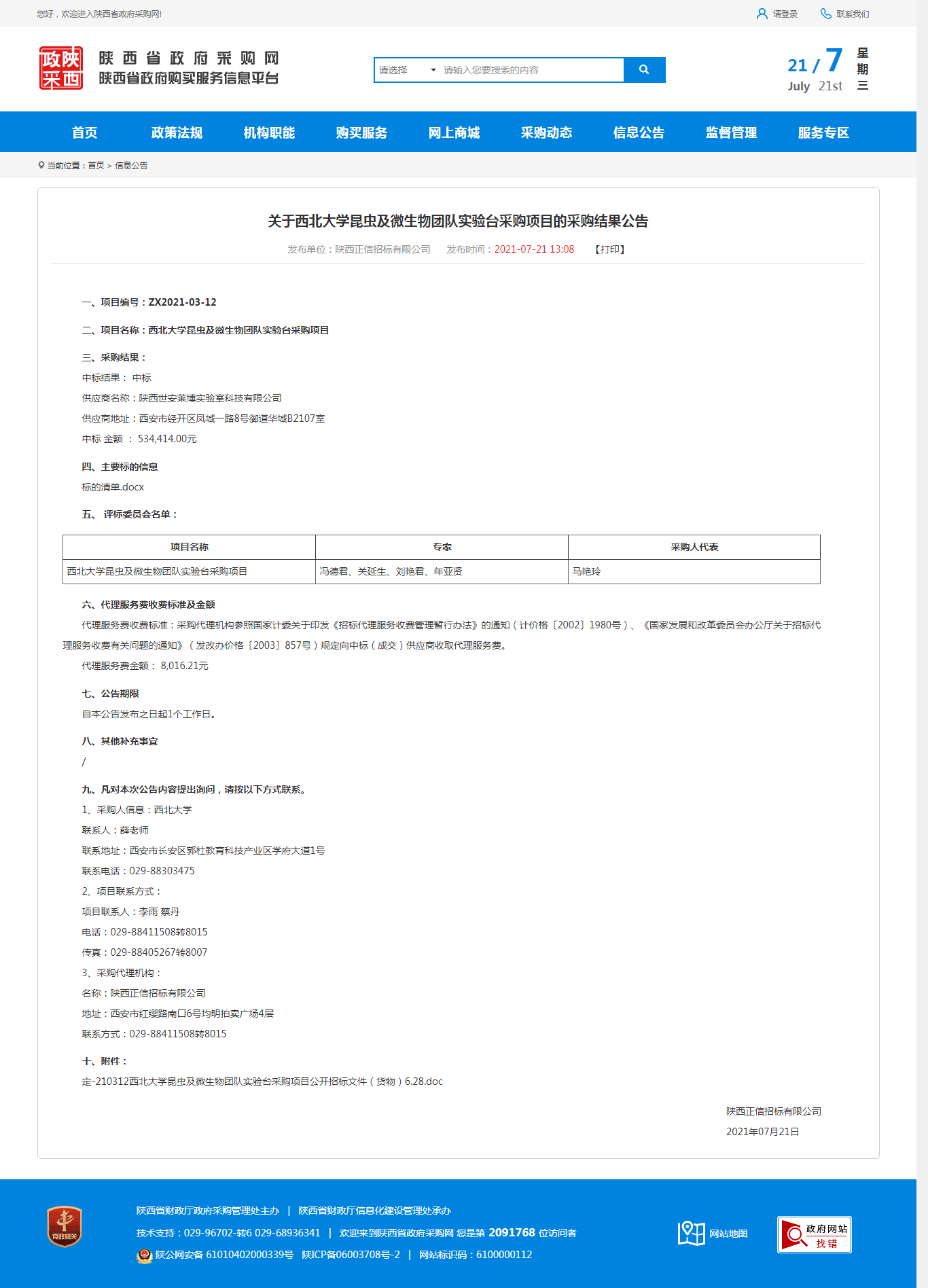 关于米兰网页版·官方端在线昆虫及微生物团队实验台采购项目的采购结果公告 作者: 编辑:采购与招标办公室 时间:2021-07-21 原公告地址:http://www.ccgp-shaanxi.gov.cn/notice/noticeDetail.do?noticeguid=8a85be347a795e58017ac68e08ff1739