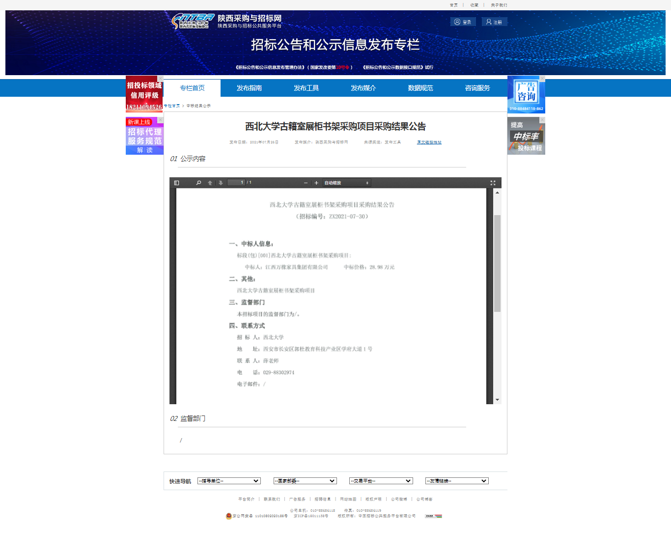 米兰网页版·官方端在线古籍室展柜书架采购项目采购结果公告 作者: 编辑:采购与招标办公实验室 时间:2021-07-26 原公告地址:http://bulletin.sntba.com/resultBulletin/2021-07-26/323299.html