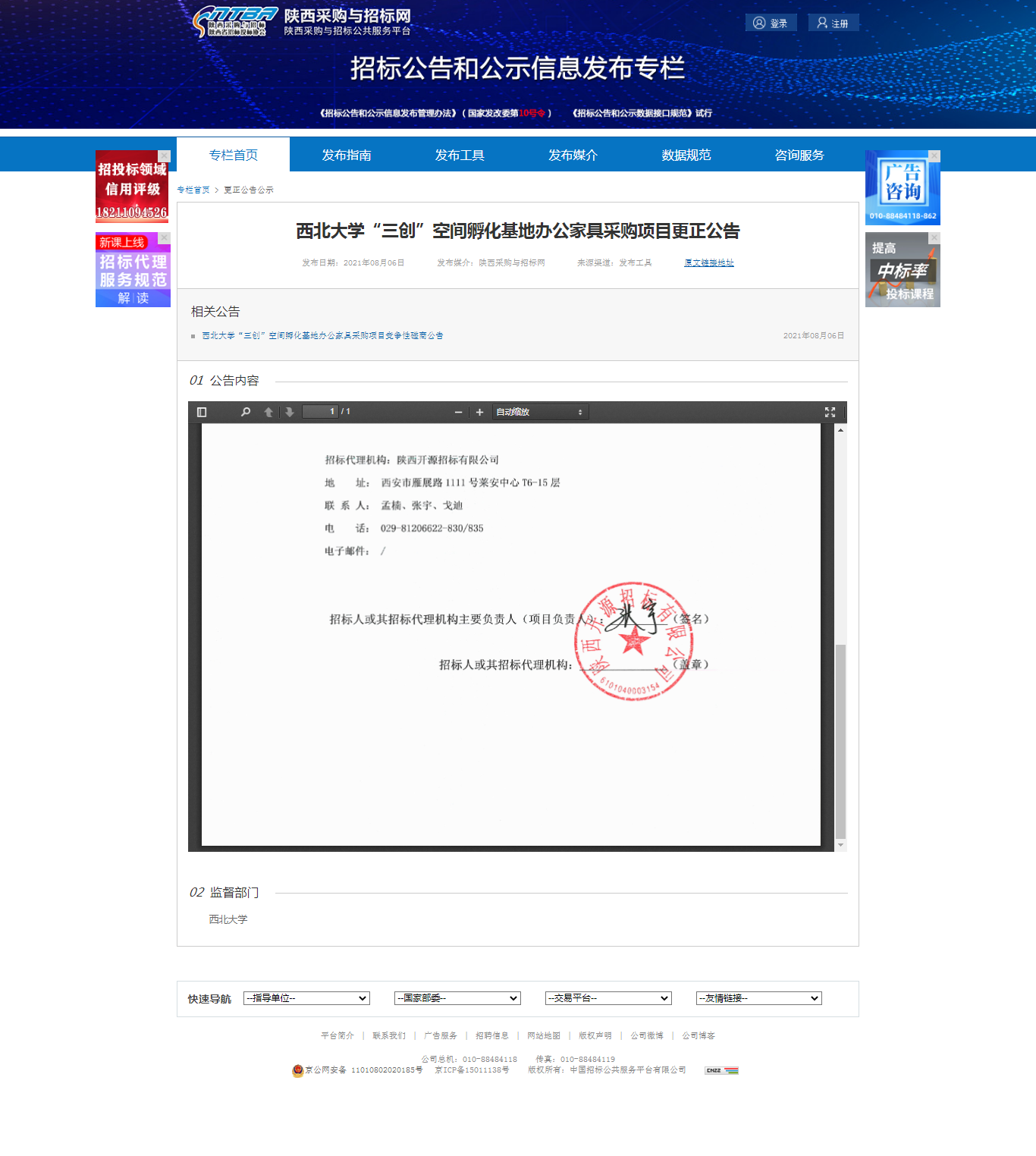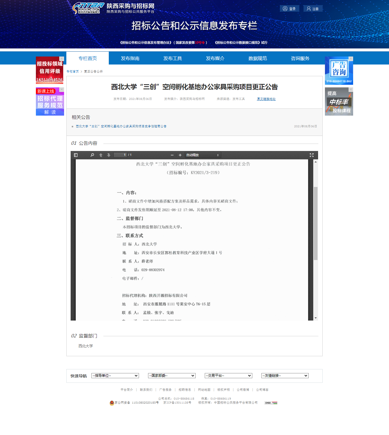 米兰网页版·官方端在线“三创”空间孵化基地办公家具采购项目更正公告 作者: 编辑:采购与招标办公室 时间:2021-08-06 原公告地址:http://bulletin.sntba.com/changeBulletin/2021-08-06/327902.html