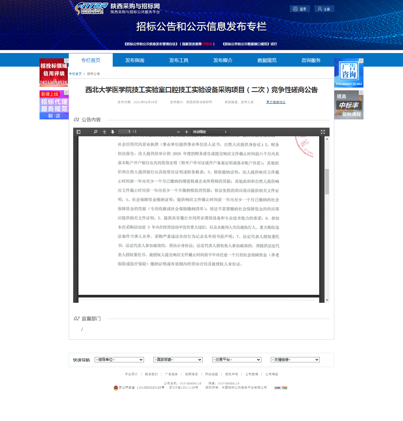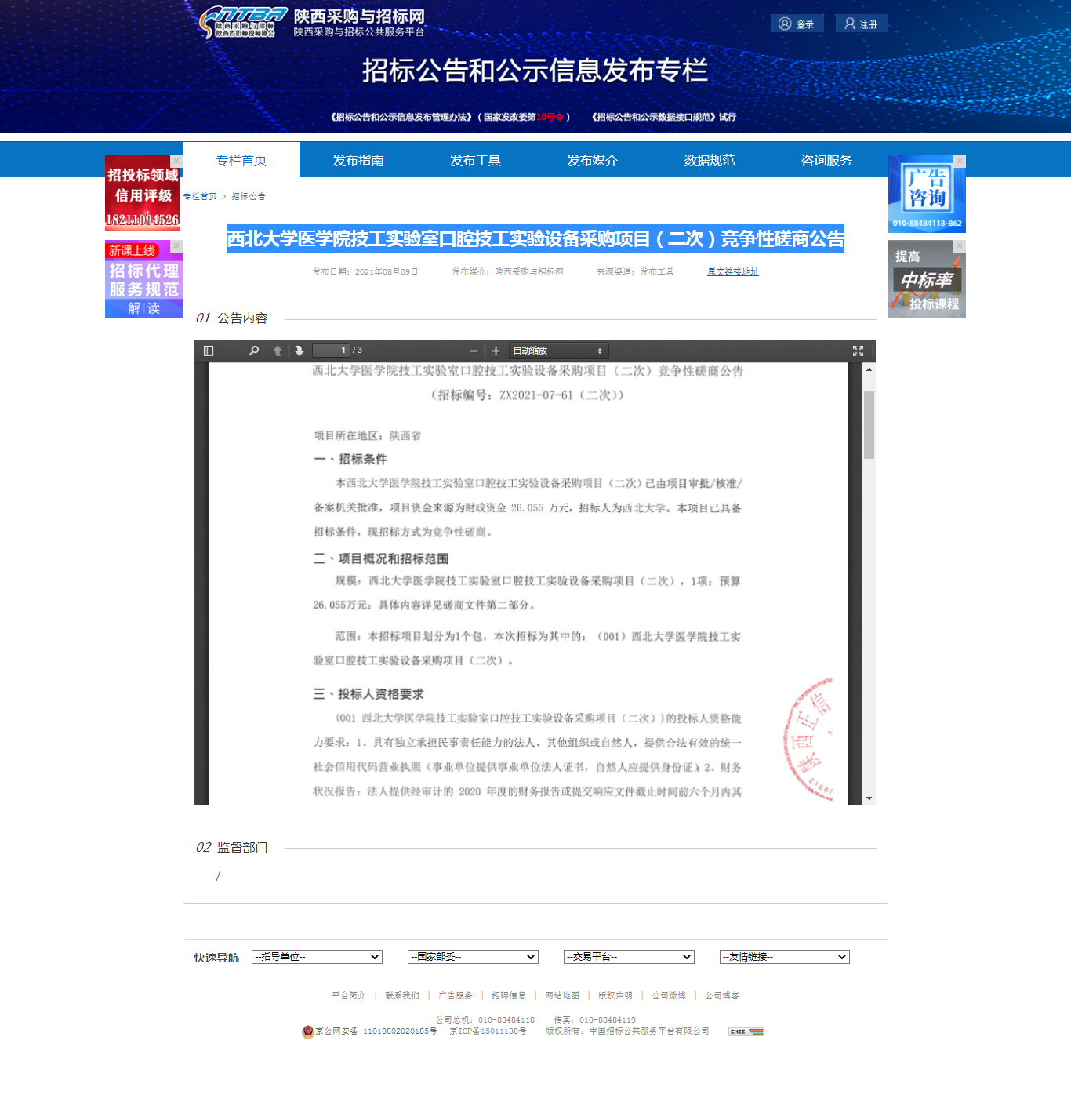 米兰网页版·官方端在线医学院技工实验室口腔技工实验设备采购项目(二次)竞争性磋商公告 作者: 编辑:采购与招标办公室 时间:2021-08-09 原公告地址:http://bulletin.sntba.com/biddingBulletin/2021-08-09/328931.html