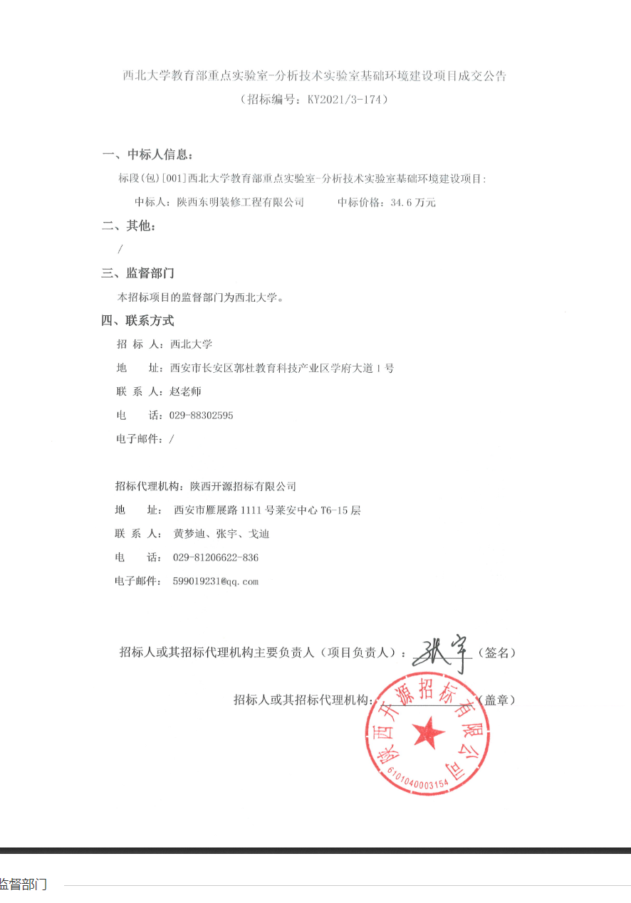 米兰网页版·官方端在线教育部重点实验室-分析技术实验室基础环境建设项目成交公告