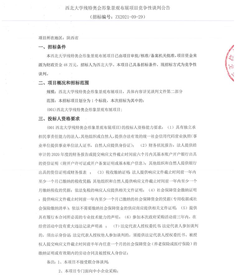 米兰网页版·官方端在线残特奥会形象景观布展项目竞争性谈判公告