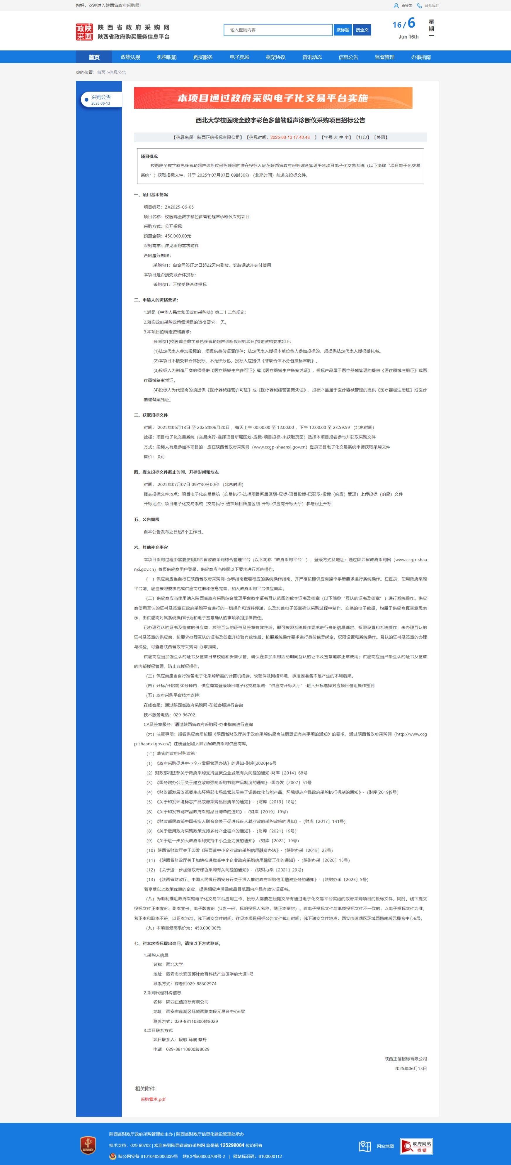 米兰网页版·官方端在线校医院全数字彩色多普勒超声诊断仪采购项目招标公告 作者: 编辑:采购与招标办公室 时间:2025-06-16 原公告链接:https://www.ccgp-shaanxi.gov.cn/freecms/site/shaanxi/ggxx/info/2025/8a69c6749714a43701976892e3823fce.html?noticeType=001011¬iceId=6edbc741-483c-11f0-8063-08c0eb20c666