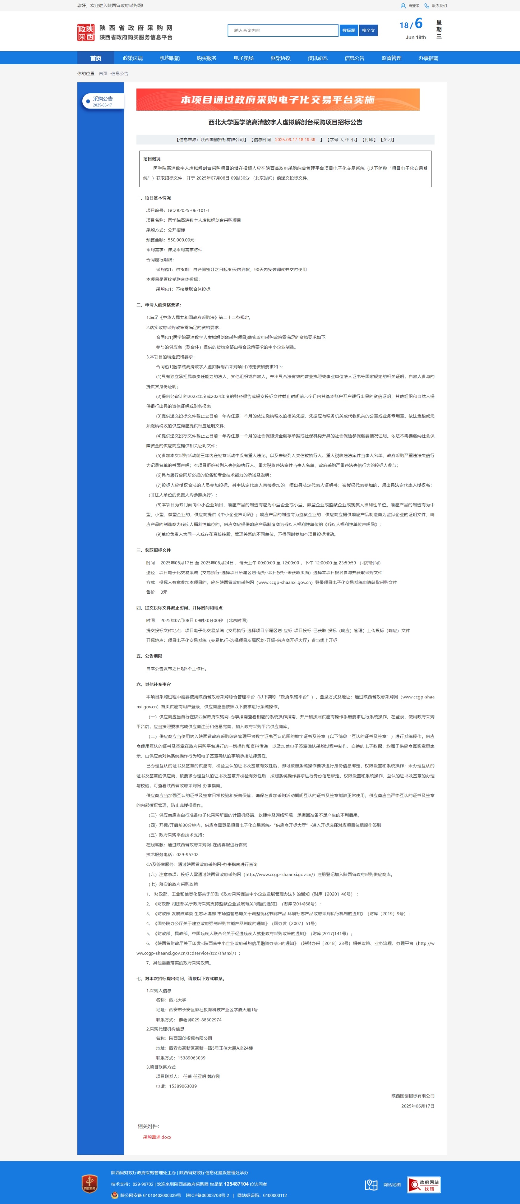 米兰网页版·官方端在线医学院高清数字人虚拟解剖台采购项目招标公告 作者: 编辑:采购与招标办公室 时间:2025-06-18 原公告链接:https://www.ccgp-shaanxi.gov.cn/freecms/site/shaanxi/ggxx/info/2025/8a69c0a29672060001977d5b25b77c33.html?noticeType=001011¬iceId=8a96e29e-4b66-11f0-8063-08c0eb20c666