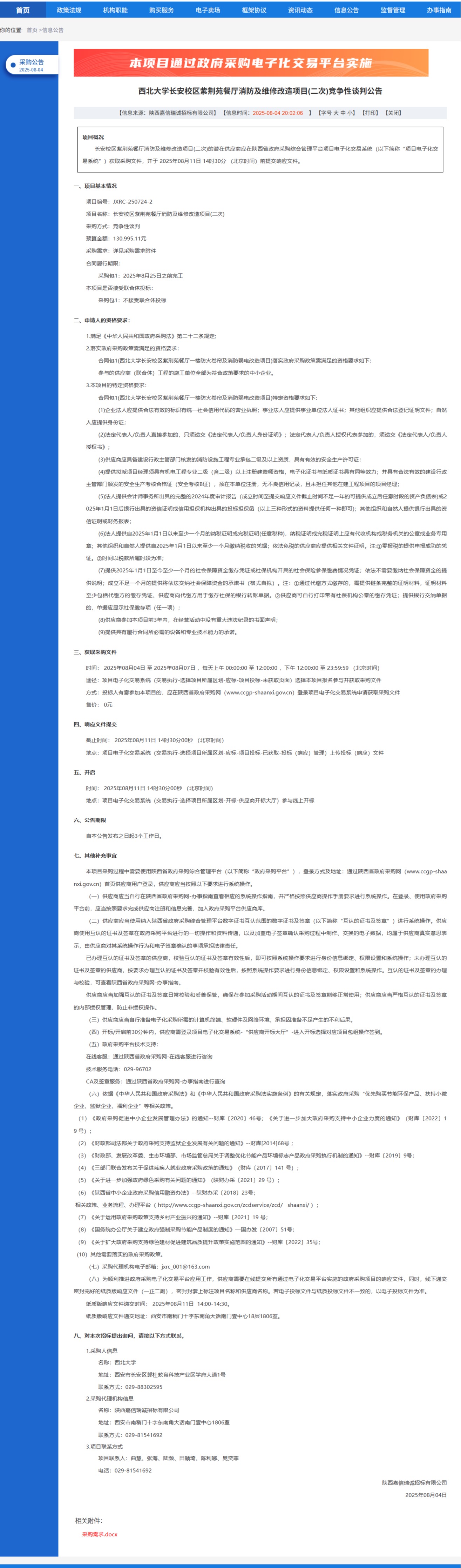 米兰网页版·官方端在线长安校区紫荆苑餐厅消防及维修改造项目(二次)竞争性谈判公告 作者: 编辑:党丹珩 时间:2025-08-04 公告地址:https://www.ccgp-shaanxi.gov.cn/freecms/site/shaanxi/ggxx/info/2025/8a69c1e29860ef6f019874c6b4a22713.html?noticeType=001013¬iceId=e37c65dc-712c-11f0-8063-08c0eb20c666