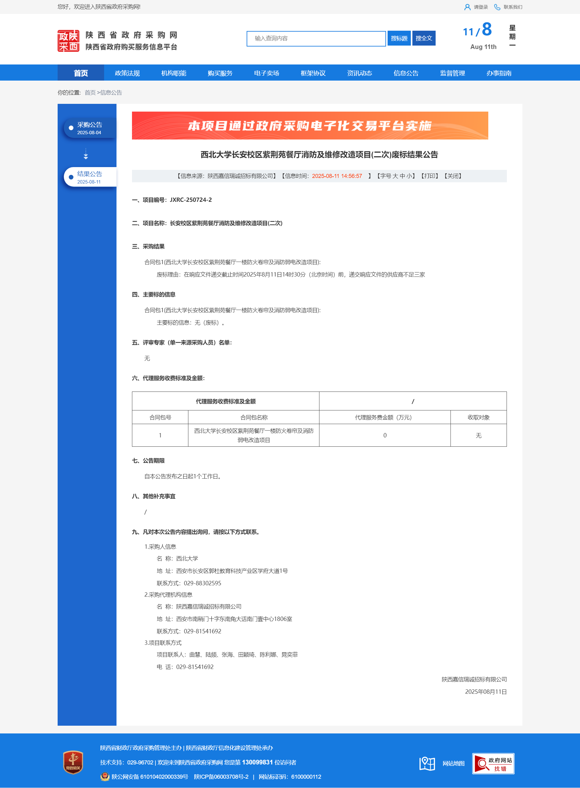 米兰网页版·官方端在线长安校区紫荆苑餐厅消防及维修改造项目(二次)废标结果公告