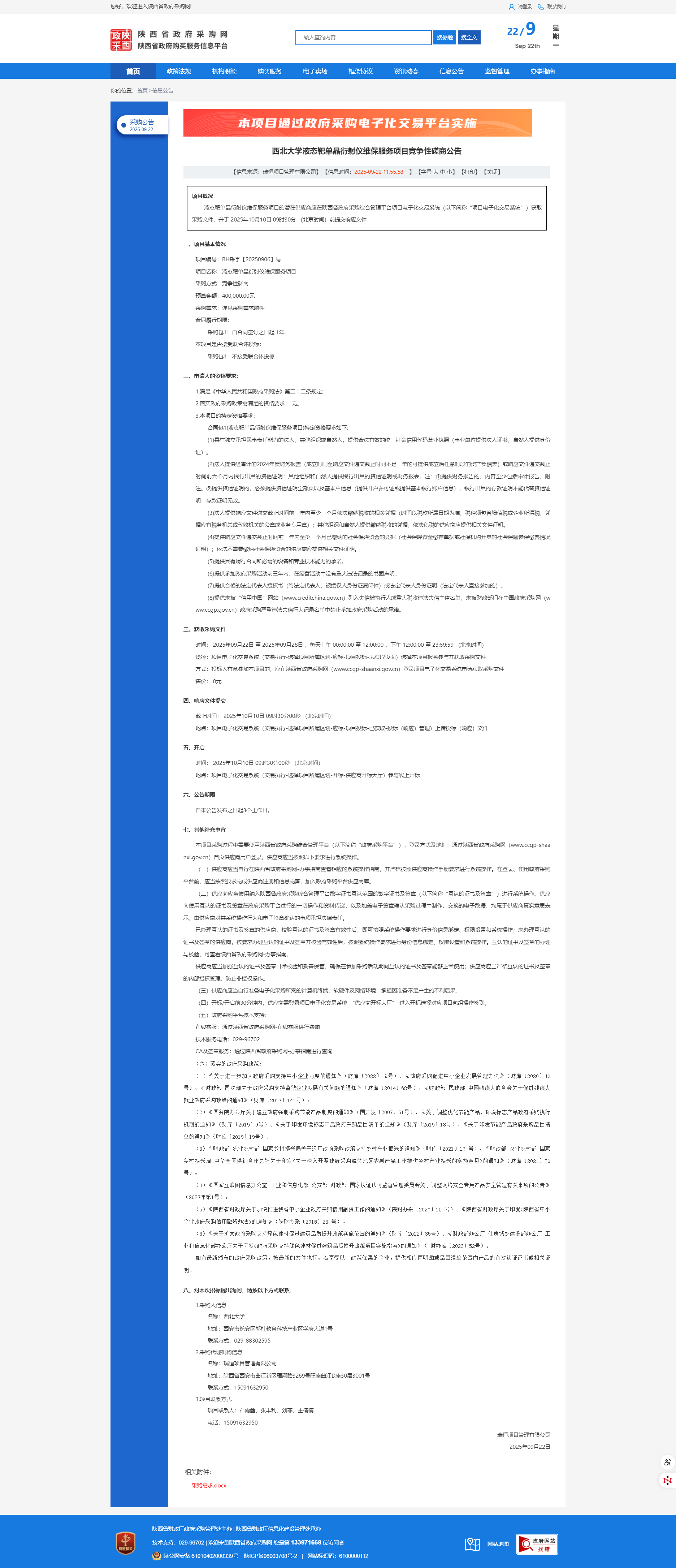 米兰网页版·官方端在线液态靶单晶衍射仪维保服务项目竞争性磋商公告
