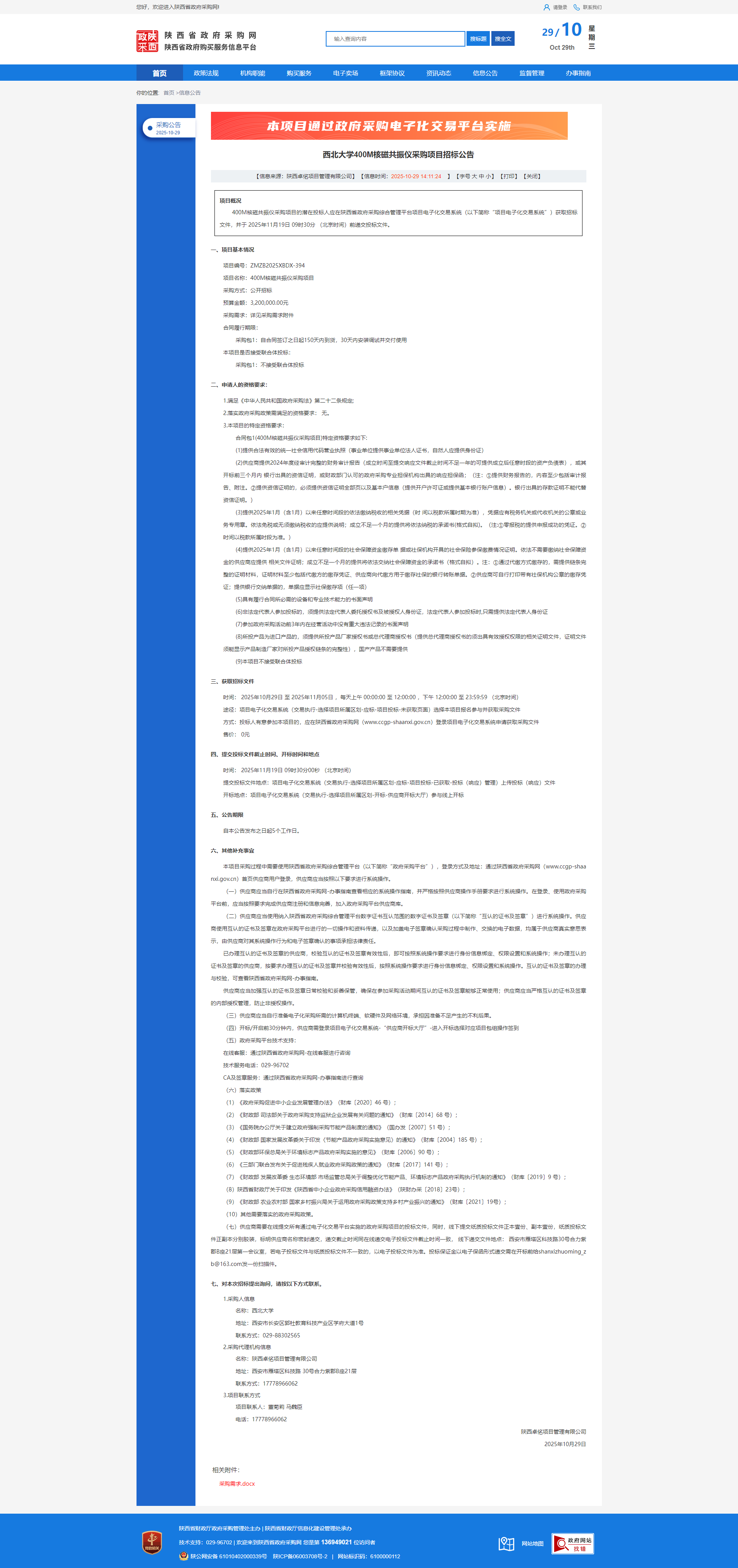 米兰网页版·官方端在线400M核磁共振仪采购项目招标公告