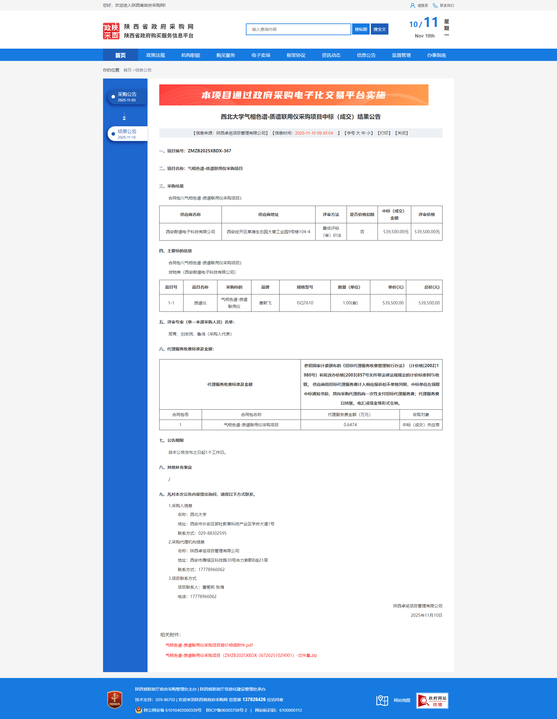 米兰网页版·官方端在线气相色谱-质谱联用仪采购项目中标(成交)结果公告