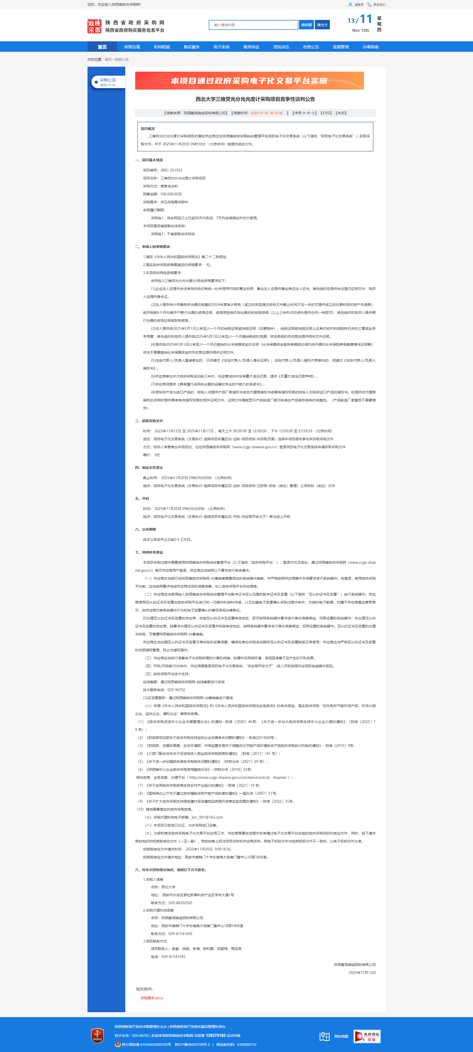 米兰网页版·官方端在线三维荧光分光光度计采购项目竞争性谈判公告