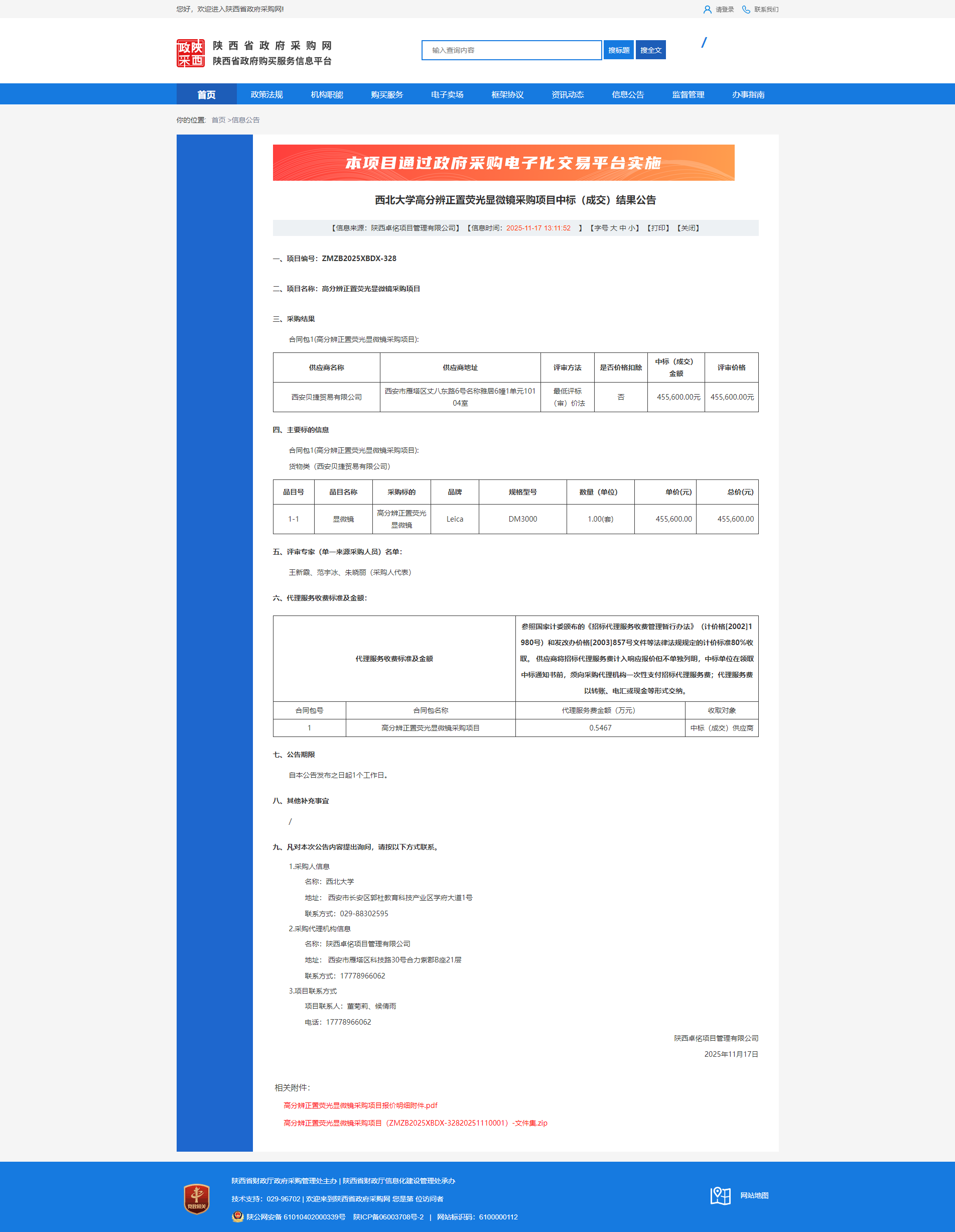 米兰网页版·官方端在线高分辨正置荧光显微镜采购项目中标(成交)结果公告
