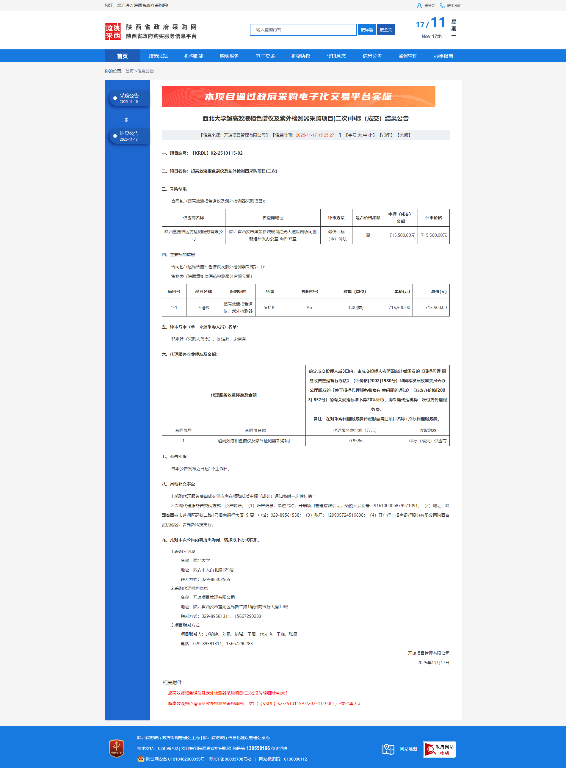 米兰网页版·官方端在线超高效液相色谱仪及紫外检测器采购项目(二次)中标(成交)结果公告