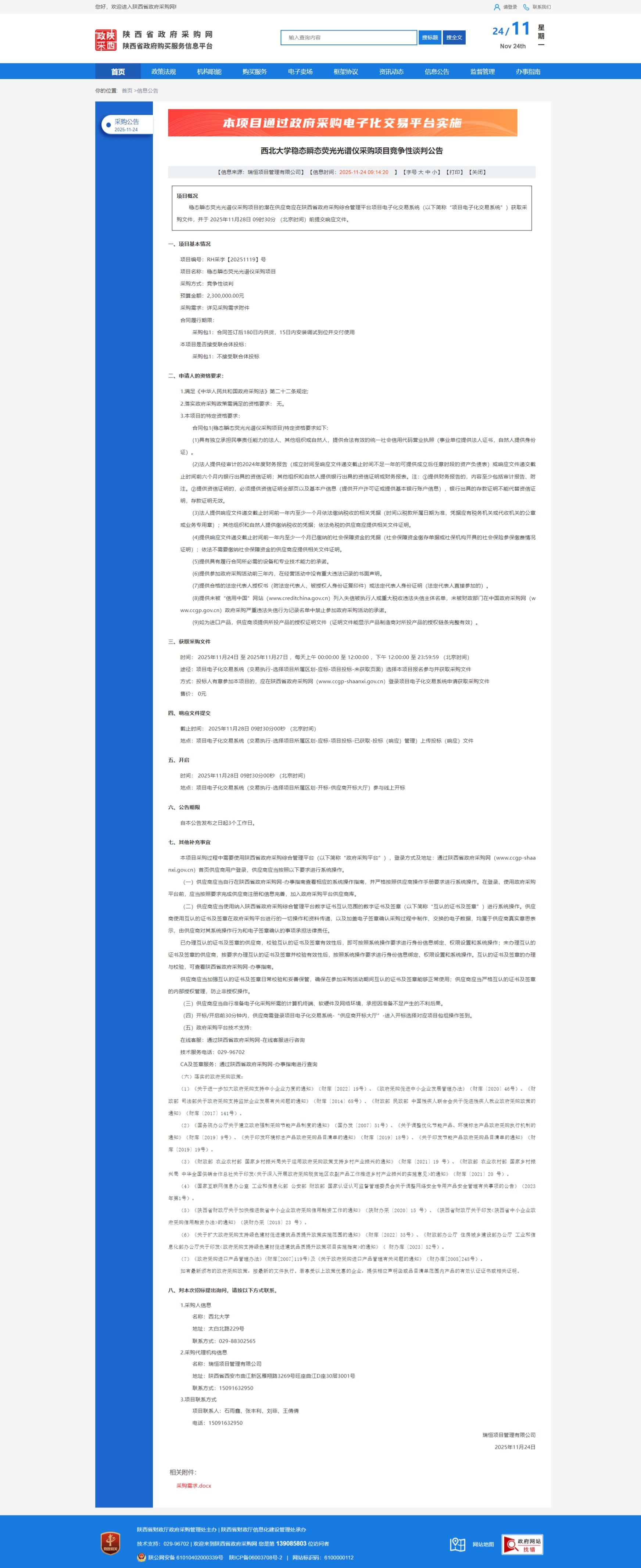米兰网页版·官方端在线稳态瞬态荧光光谱仪采购项目竞争性谈判公告 作者: 编辑:国有资产管理处 时间:2025-11-24 原公告链接:https://www.ccgp-shaanxi.gov.cn/freecms/site/shaanxi/ggxx/info/2025/8a69c5539a636e42019ab358867551cb.html?noticeType=001013¬iceId=24a6bfdb-c8d5-11f0-8063-08c0eb20c666