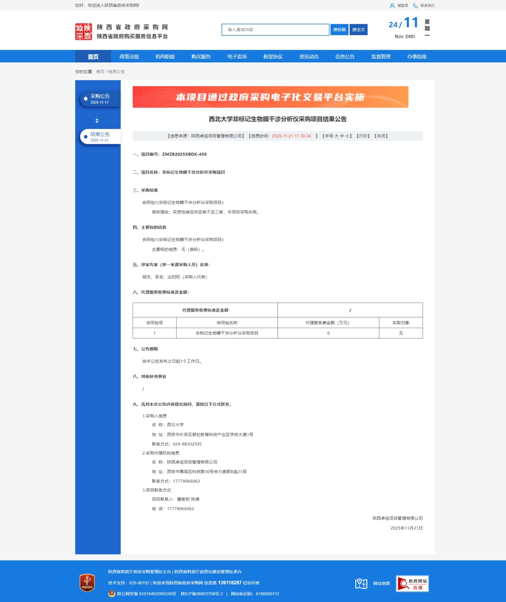 米兰网页版·官方端在线非标记生物膜干涉分析仪采购项目结果公告 作者: 编辑:国有资产管理处 时间:2025-11-24 原公告链接:https://www.ccgp-shaanxi.gov.cn/freecms/site/shaanxi/ggxx/info/2025/8a69c17b9a636c6b019aa5bc305d79e5.html?noticeType=001006¬iceId=f6e85374-c6be-11f0-8063-08c0eb20c666